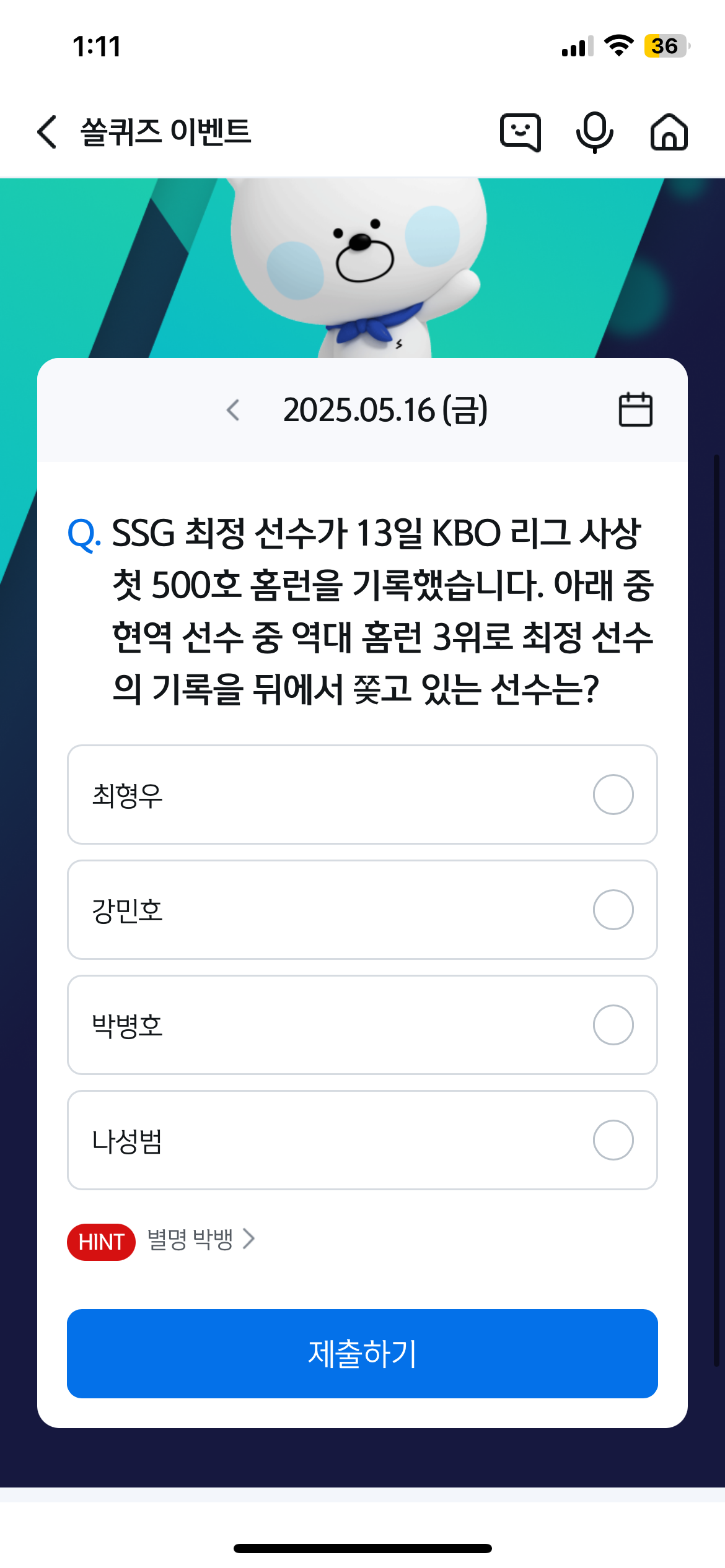 2025년5월16일 신한쏠퀴즈 정답