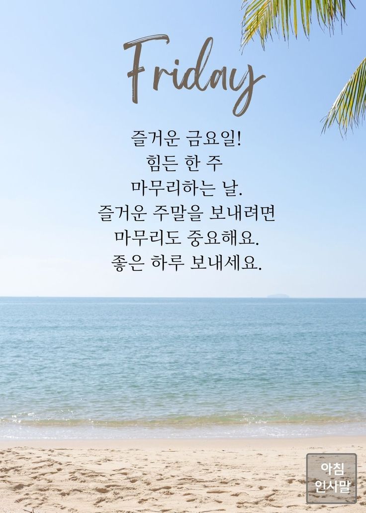 상쾌한 금요일 아침입니다! 잘 주무셨어요? 오늘 하루도 건강하게 보내세요!